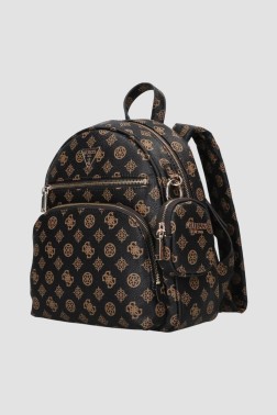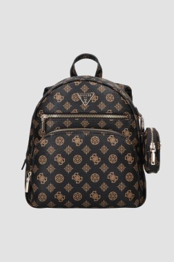 Brown women's Power Play Tech Backpack, by Guess. The backpack is made of eco leather, has 1 large compartment, 2 slip pockets on the outside, 2 slip pockets on the inside. The backpack has protective feet and a dust bag included.