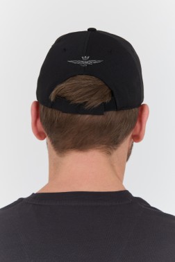 Black men's baseball cap with embroidered logo, by Aeronautica Militare.