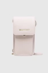 Phone case in broken white color. The flap closes with a snap closure. Two compartments inside. The case can be worn on the shoulder on an adjustable cord.