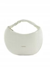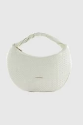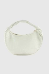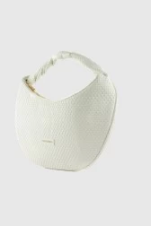 White braided zippered handbag. Inside, one zippered pocket and two slip pockets.