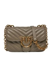 Women's Love Bell Mini handbag by PINKO. The flap closes with a snap closure, inside there are two compartments, one zipped pocket and one slip pocket.