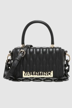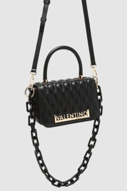 Small Copacaban Satchel handbag by Valentino by Mario Valentino. The flap closes with a snap closure, inside there is one zippered pocket. It has an 11 cm high handle and two attachable straps: a 78 cm chain and a 121 cm adjustable strap. Dust bag included.