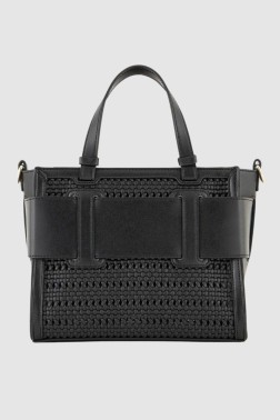 Black classic handbag by Armani Exchange. Handbag with a zipper closure. Inside there is one slip pocket. It has handles with a height of 11 cm and an adjustable strap of 116 cm. Comes with a dust bag.