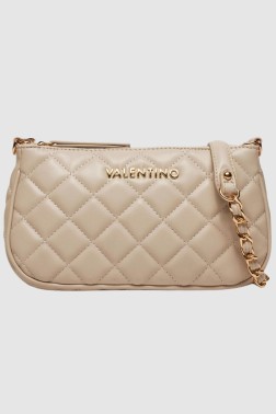 Double beige Ocarina Crossbody handbag by Valentino by Mario Valentino. The handbag has a zippered closure. Inside there is one zipped pocket and one slip pocket, as well as a small pouch measuring 12 cm high, 19 cm wide and 4 cm long. Inside the pouch there is one zippered and one slip pocket, and two attachable chains one 119 cm long and the other 59 cm long. A dust bag is included.