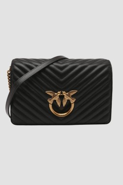 The black women's Love Click Classic handbag by Pinko is a stylish accessory made of natural leather. The handbag features an adjustable strap, two compartments divided by a zippered pocket and an additional slip pocket for convenient organization. It closes with a magnet, and comes with a dust bag to protect the handbag during storage.