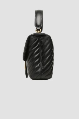 The black Love Lady Puff Classic CL handbag by Pinko is a stylish and functional accessory made of natural leather. The handbag features an adjustable strap, two compartments separated by a zippered pocket and an additional slip pocket for convenient interior organization. The 8 cm high handle adds to its elegance and practicality. The bag closes with a snap closure and comes with a dust bag to protect it during storage.
