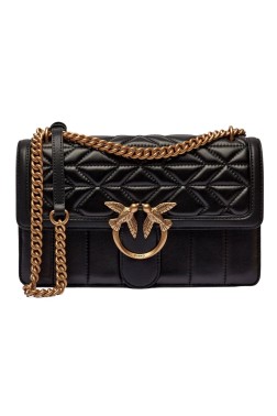 The black Love One Classic DC women's handbag by Pinko is an elegant accessory made of high-quality natural leather. The handbag features an adjustable strap, two compartments separated by a zippered pocket and an additional slip pocket for convenient organization. It closes with a stylish snap closure, and comes with a dust bag to protect the bag during storage.