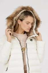 BLAUER Ecru women's down jacket with detachable raccoon fur