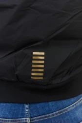 EA7 EMPORIO ARMANI men's jacket in black with a hood. On the front a small logo in gold color. On the back a reflective application in gold color. Two-way zipper closure. Drawstring hood with straps. Two large two-way zipper pockets on the front. Lining made of thin fleece. Jacket finished with a chaser at the waist and cuffs.