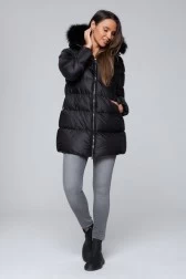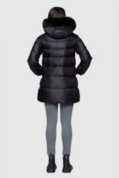 HETREGO Black long down jacket Hanna with foxing