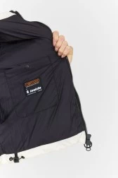 - Detachable hood with straps, suspenders, hidden drawstring at bottom