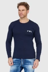 EMPORIO ARMANI UNDERWEAR men's longsleeve in navy blue. Logo in white and gray on the front. Round, ribbed neckline.