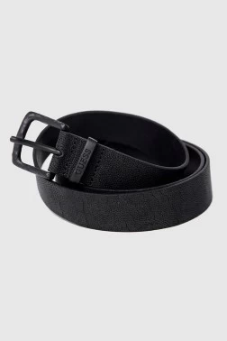 GUESS men's belt in black with an interesting texture. Made of natural leather. Buckle with the company logo in black.