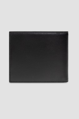 Black men's leather wallet, Dolce & Gabbana. Features 4 card slots and 1 slip pocket, plus a coin slot. Packaged in a branded box.