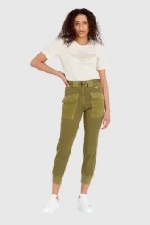 AERONAUTICA MILITARE Green women's cargo pants with drawstring waistband