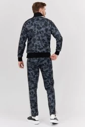 Men's track pants in gray and black moro. Beige piping on the sides. White logo on the front and slip pockets. Elastic waistband. Legs with short zippers on the sides.