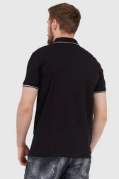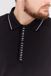 ARMANI EXCHANGE men's polo shirt in black with a covered zipper. Decorated with a white logo.