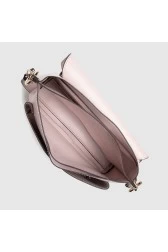 Small handbag in light pink color. Two detachable straps, a shorter one for the shoulder and a long crossbody with adjustable straps. Fastened with a magnet. Three compartments inside. Dust bag included.