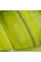Yellow moon-shaped bag with silver metal VALENTINO lettering on the bottom. Crocodile leather structure. Silver hardware. Strap-strap of 35 cm, to which an adjustable shoulder strap is attached.