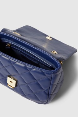 Stylish small quilted Ocarina handbag, by Valentino by Mario Valentino, on a gold chain. The flap closes with a snap closure, inside one slip pocket and one zipped pocket. It can be carried in hand (handles height 33 cm) or on shoulder (58 cm) with low handle (7 cm). Dust bag included.