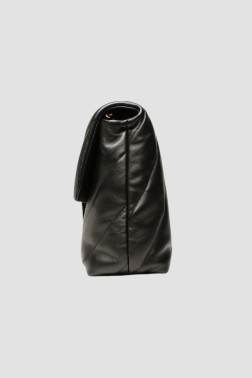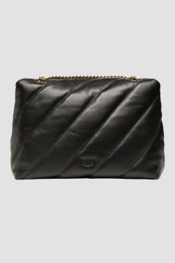 Black large women's quilted Love Puff Big handbag by Pinko. The handbag is made of natural leather. Inside there are 3 compartments: 2 slip-in, 1 zippered, and 1 slip-in pocket. It has a strap with a length of 118 cm.