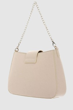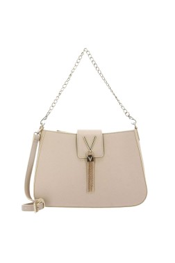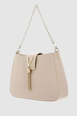 Divina SA postbag by Valentino by Mario Valentino. The bag closes with a magnet. Inside, one zipped pocket and two slip pockets. It has two straps: a 46 cm chain and a 117 cm adjustable strap.