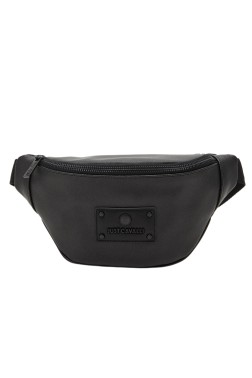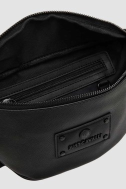 The black JC Gothic Plate - Style 2 pouch by Just Cavalli is a stylish and practical accessory made of eco-friendly leather. The pouch features one zippered compartment and an exterior pocket. Inside there is one slip pocket and one zippered pocket, providing functional organization. The sachet has an adjustable strap and comes with a dust bag to protect the accessory during storage.