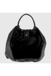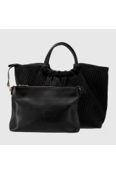 Black pleated bag, closed with a magnet. Inside there is one zipper pocket and two slip pockets. Includes a pouch that can be worn as a separate handbag and an adjustable strap.