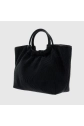 VALENTINO Black pleated river re shopper bag with pouch