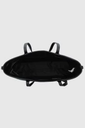 Large black shopper bag with feet. Zippered compartment. Inside one large zippered pocket and two slip pockets.