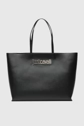JUST CAVALLI Black Range Metal Lettering Shopper Bag