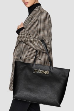 JUST CAVALLI Black Range B Metal Lettering Shopper Bag
