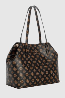 Brown logoed 2-in-1 Vikky II handbag by Guess. The handbag closes with a magnet and snap closure. The bottom of the bag is protected by feet. Includes a dust bag and a pouch on a 45 cm strap, measuring 27 cm x 18 cm x 5 cm.