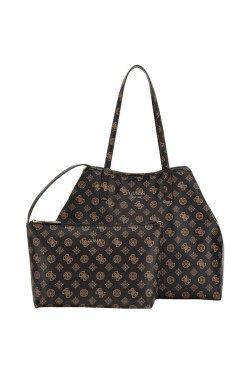 Large 2-in-1 Vikky II shopper bag by Guess. The bag closes with a magnet and snap closure. The bottom of the bag is protected by feet. Includes a dust bag and a pouch on a 45 cm strap, measuring 31 cm x 18 cm x 6 cm.