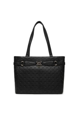 Black logo shopper Arlena Logo Noel Tote by Guess. The bag has a main compartment with a zipper and one slip-in compartment. Inside, there is a compartment, two slip pockets and one zippered pocket. The bottom of the bag is protected by feet. Dust bag included.