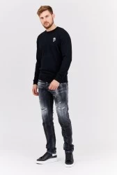 Men's KARL LAGERFELD sweater in black with embroidered logo. Made of pleasant-to-the-touch merino wool. Round neckline, hem and sleeves finished with a ribbed hem.