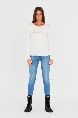 Beige women's sweater with zircons by Guess.