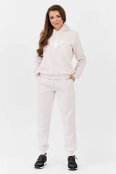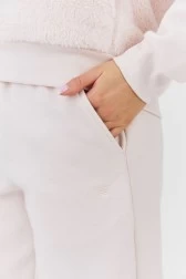 Women's sweatpants in pink color. On the left leg a small embroidered logo. Two, slip pockets on the front. Elastic waistband and legs finished with ribbed hem.