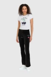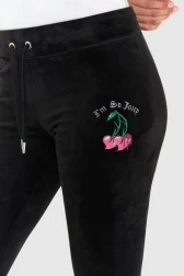 JUICY COUTURE Black velour sweatpants with embroidered cherries