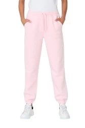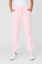 Women's Sora pants by JUICY COUTURE in pink color. The waist of the pants is finished with elastic, adjustable with strings, which makes them fit your figure perfectly. The legs are tapered. A distinctive feature of the pants is the brand's white logo, visible both on the front and back. It's a subtle detail that makes them unique.