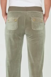 Green Del Ray women's pants by JUICY COUTURE. Made of pleasant velour, they provide exceptional wearing comfort. There is a small embroidered logo on the front of the pants, adding subtle elegance. There are two zippered pockets at the back.