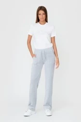 Gray women's Del Ray pants by JUICY COUTURE. Made of pleasant cotton, they provide exceptional wearing comfort. There is a small embroidered logo on the front of the pants, adding subtle elegance. There are two zippered pockets at the back.