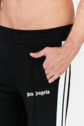 Men's PALM ANGELS sweatpants in black. White piping on the sides. White logo and slip pockets on the front. Elastic waistband. Leggings with short zippers on the sides.