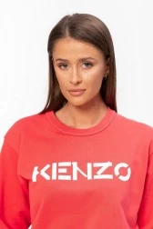 KENZO women's cotton sweatshirt in coral color. Printed on the chest with a white logo. Round ribbed neckline. Bottom and sleeves finished with ribbed cuffs.