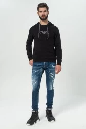 EMPORIO ARMANI Black men's hoodie with embroidered logo