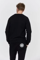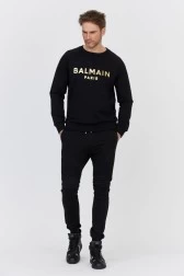 BALMAIN men's cotton sweatshirt in black. Gold-colored logo on the front. Round neckline, hem and sleeves finished with a ribbed hem.