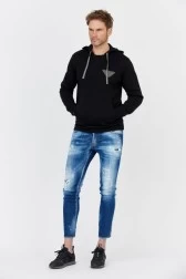 EMPORIO ARMANI Black men's hoodie with grey logo