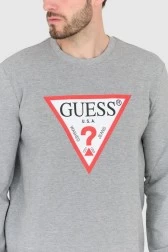 Gray men's sweatshirt with large Guess logo.