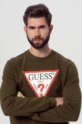 GUESS men's sweatshirt in green color. On the chest a large triangular logo. Bottom and sleeves finished with ribbed cuffs.