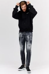 Men's hoodie in black with a hood. On thefront a small logo and a slip pocket. On the back a large logo with a print of the painting "St. Jerome writing" by Caravaggio. Drawstring hood. Bottom and sleeves finished with ribbed hem.